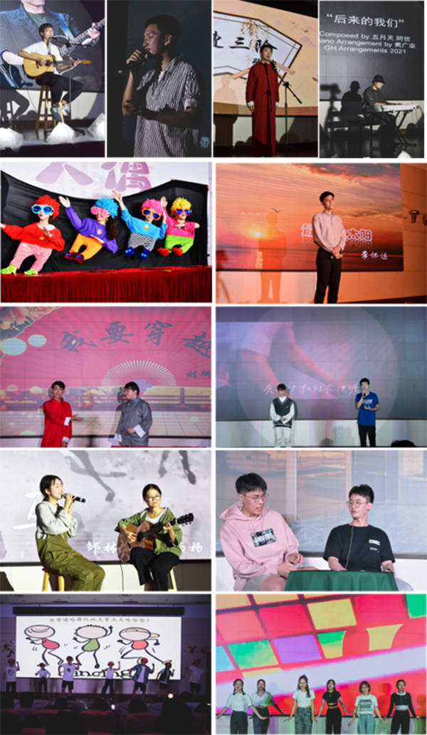 迎新晚会在默契十足的《手影舞》中正式拉开帷幕,黑暗中荧光与手势相得益彰,勾勒出不同图案,伴随着《遇见》的旋律层层深入,“2021”、“SIOC”的字样徐徐呈现,饱含了新生们对有机所真挚的热爱。“麦神争霸赛”冠军李怀远献唱歌曲《最美的太阳》,抒情励志的歌词搭配穿透力十足的歌声,引起了观众们逐梦的共鸣。新生们以不同的形式演唱了歌曲《这世界那么多人》、《斑马,斑马》、《她说》,深情动情的演唱令人陶醉,深情款款、回味无穷。吉他弹唱《男孩》情绪饱满、扣人心弦。钢琴独奏《后来的我们》行云流水,旋律在柔情中带着硬度,触动心灵。舞蹈《New Boy》动感十足,团舞《Yes!OK!》青春洋溢,活泼热情的舞蹈将晚会推上了高潮,充分展现了年轻人的朝气蓬勃的精神面貌。歌舞之中,语言节目也是分外精彩。相声《我要穿越》通过诙谐幽默的对话,带领观众与主角一起,坐上时光机,回顾古今,穿插化学趣事,观众笑声不断。单口相声《日遭三险》以精湛的演技、轻快幽默的表演为观众们讲述了“聪明反被聪明误”的知县故事。小品《一个女婿半个儿》戏剧性剧情地让观众们认识到提高防诈骗意识的重要性。整场晚会精彩纷呈,高潮迭起,赢得台下阵阵掌声。舞蹈《欢乐的人偶》欢快热烈的风格带动了全场观众的热情,风格搞怪幽默,表演灵动可爱,在全场的欢呼声中,晚会也走向了尾声。