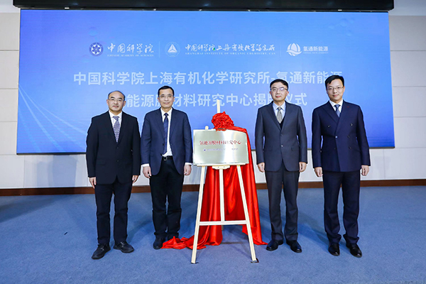 2022年1月5日,上海有机所&氢通新能源战略合作暨氢能源膜材料研究中心揭牌仪式在君谋楼一楼报告厅举行。氢通(上海)新能源科技有限公司代表任亚辉、李家球、徐建华、赵景辉、韩鹏等人,上海有机所所长唐勇院士、胡金波研究员、张新刚研究员、肖吉昌研究员、沈其龙研究员、侯雪龙研究员以及科研处处长杨慧娜等人出席仪式。仪式由胡金波主持。