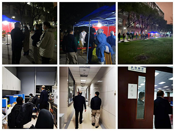 面对突来的临时封控,启动紧急预案。党政班子齐心协力,深入一线对留所职工和学生现场开展安抚和疏导、指导安排临时住宿;后勤服务队和党员志愿者提前发放夜间生活防护物资、搭建检测帐篷,以最短的时间、最高的效率等待核酸检测医护人员的到来,减少等待焦虑;核酸检测现场,志愿者热心服务、有序指引,园区员工和学生密切配合开展核酸检测。风雨寒、人心暖,疫情虽难、心齐必克!