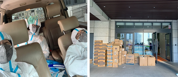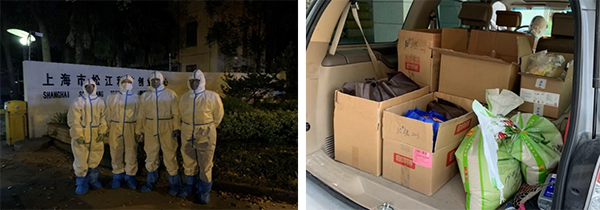 病毒无情人有情。为了能让居住在双峰路公寓和肇嘉浜路上海分院公寓的学生们吃上热腾腾的饭菜,特别招募组建一支送餐小分队,来保证研究所外学生的一日三餐以及日常必需物资需求。陶文生、方坦、曾伟、林芙蓉、余尚博、王昊阳等老师主动请缨,义不容辞地加入了这支志愿队伍,负责起研究所的一切对外(出园区)工作,为所外的学生送餐也只是他们众多志愿工作内容之一。