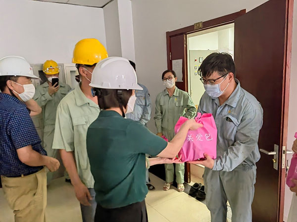 7月20日下午,所长唐勇、党委副书记(主持工作)游书力、纪委书记石岩森、工会主席张新刚以及工会相关同志等先后走访慰问了枫林园区玻璃维修车间、公共技术服务中心、高压釜房、仓库、后勤和安全部门等坚守在高温工作岗位的职工,每到一处,所领导和工会同志认真听取职工们工作和生活中的困难和问题,对大家高温期间坚持工作表示感谢和慰问。