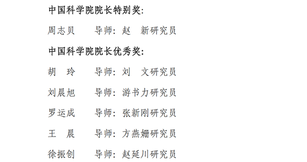 上海有机所多名研究生荣获2022年度中国科学院院长奖