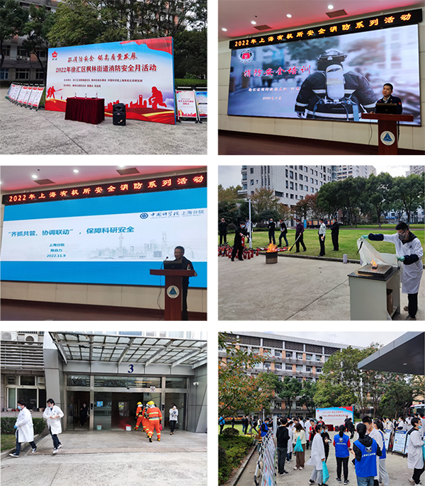 2022年11月9日是第30个全国消防日,上海有机所与徐汇区消防救援支队、枫林街道联合举办了主题为“抓消防安全,保高质量发展”的119消防安全月大型现场活动。枫林街道党工委分管领导刘智樱、徐汇区消防救援支队何杰、枫林街道平安办安全员、东安消防救援站消防员、有机所各课题组安全员及部分科研人员参加了活动。
