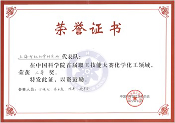 上海有机所荣获中国科学院首届职工技能大赛化学化工领域三等奖