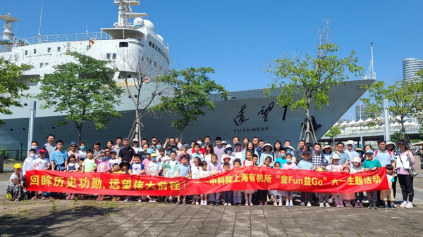 5月28日,上海有机所妇委、工会组织研究所职工与子女,赴我国第一艘远洋测量船“远望1号”现场学习参观。