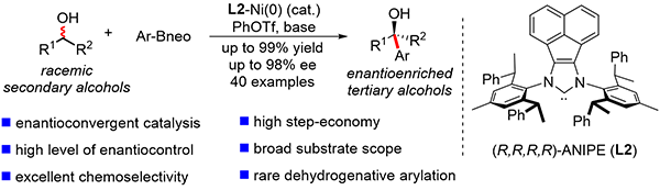 图1 镍卡宾催化仲醇的对映汇聚式芳基化反应