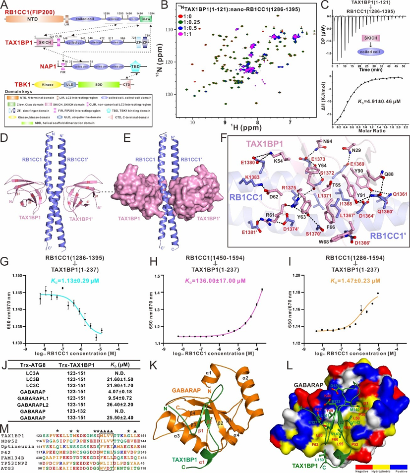 图1.TAX1BP1结合RB1CC1和ATG8家族蛋白的分子机制