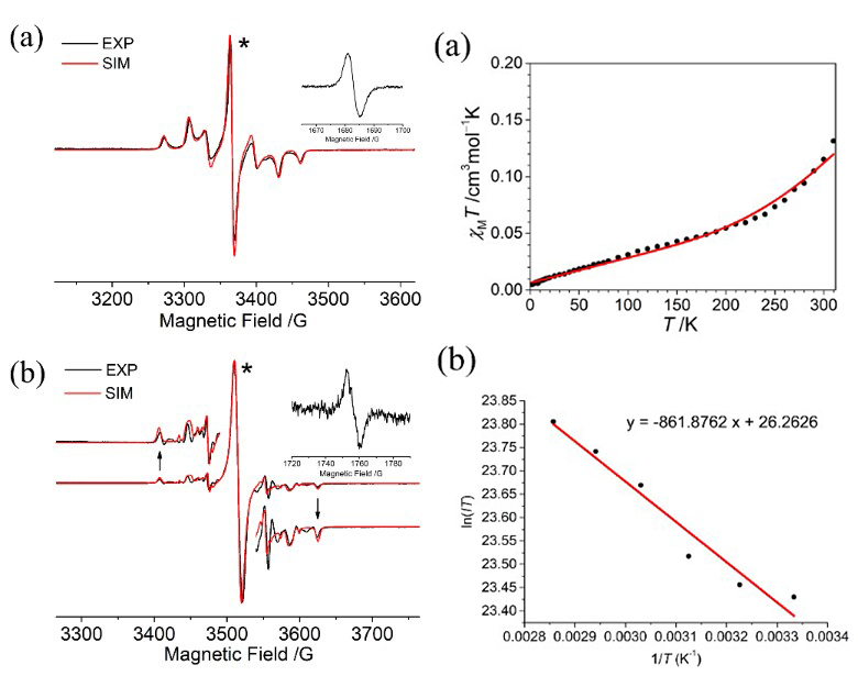 图4. M-3K(上)和Rac-3B(下)的EPR和SQUID谱图