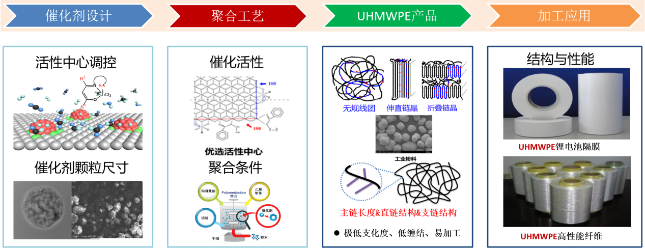 超高分子量聚乙烯(UHMWPE)是聚乙烯家族中唯一的工程塑料,是由催化乙烯配位聚合实现,树脂分子量可以达到甚至超过1000万,质轻且性能优异,在国民经济领域发挥着举足轻重的作用。UHMWPE树脂是广泛应用于防切割手套、防弹衣、高强度绳缆,铁路的减震、新能源汽车的锂电池隔膜,以及人工关节等领域的一类高分子材料。