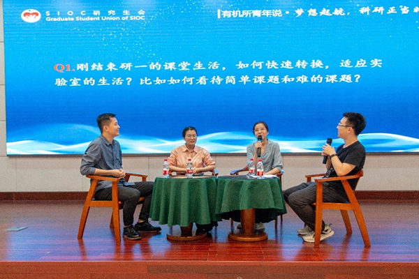 随后进行的座谈会环节,主持人提出了一些同学们在研究生生涯中会遇到的共性问题,如“刚结束研一的课堂生活,如何快速转换,适应实验室的生活?”,“如何看待简单课题和难课题?”,“在课题上,如何与导师保持高效的沟通和互动?”等等。三位嘉宾作为“过来人”,用真实有趣的个人经历和多年沉淀的真实感悟从不同的角度给出了许多有价值的建议。