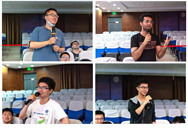 在最后的提问环节,同学们根据自身存在的问题积极向师兄师姐发问,如“如何在做实验的同时兼顾基础知识的回顾”、“如何独立发现一个有价值的课题”等。来自巴基斯坦的留学生分享了自己因为语言不通而感到在组会上很难理解别人的汇报的问题,嘉宾们用流利的英文分享了自己的想法,给出了实用的解决办法。