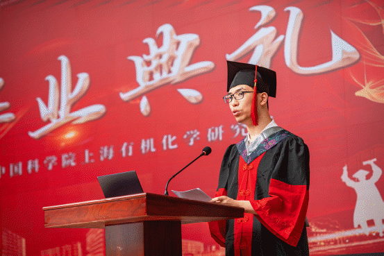 陈以昀研究员作为导师代表表达了对毕业生们的期盼:“毕业前的你们,可以肆意挥洒青春,青涩和懵懂是学生时代成长的一部分。而毕业之后的你们是经过母校认可的硕士或博士,你们将肩负更多的社会责任。你们的一言一行,不仅展现自我形象,也代表母校的荣誉。从这一刻起,你们将凭借数载沉淀的知识与能力,踏上征途,成为值得信赖、独立担当的专业人士。全体有机所人将持续关注你们的成长,为你们的每一步成就喝彩。期待你们永远保持对世界对未知的好奇之心,在未来创造更多的辉煌!”