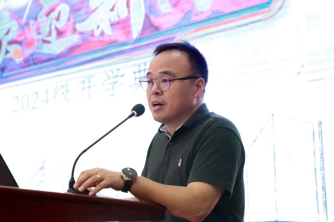 开学典礼在庄严的升旗仪式中拉开帷幕。游书力副书记首先代表有机所向全体新生致欢迎辞。他指出育人德为先,希望同学们作为当代青年怀揣热忱,勇担使命,在实现个人价值的同时回馈社会,报效国家。
