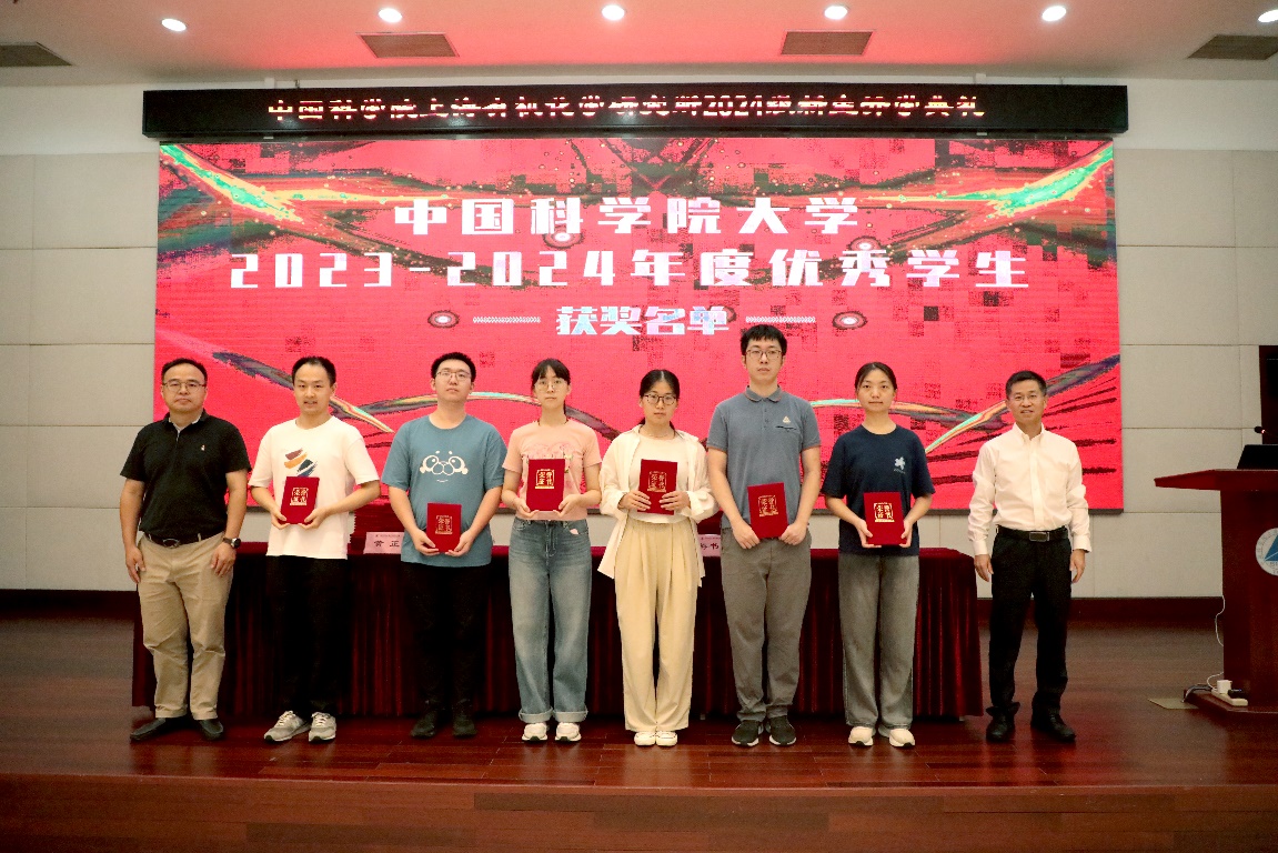 黄正主任宣读了《中国科学院大学2023—2024学年优秀学生的表彰决定》,授予倪啸等94名同学“中国科学院大学三好学生标兵”、“中国科学院大学优秀学生干部”、“中国科学院大学三好学生”等荣誉称号,各位同学依次从所领导手中接过获奖证书。