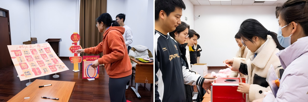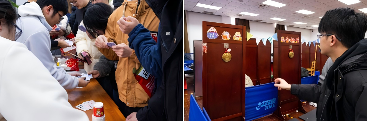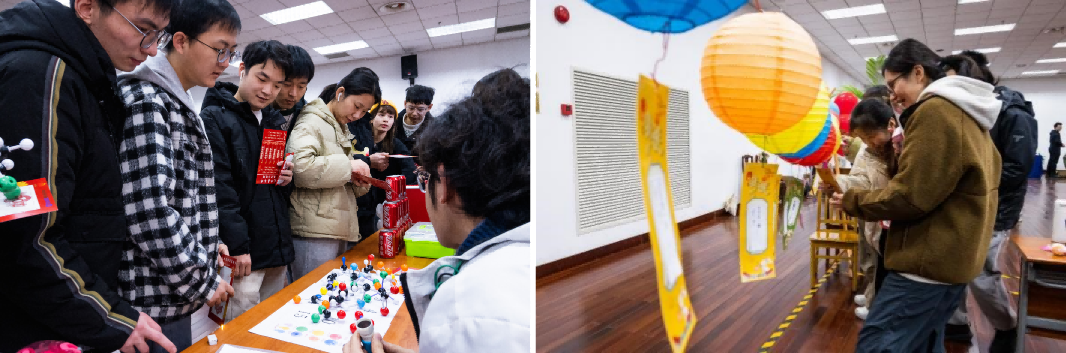 线下“元旦嘉年华”包含六大板块:“二四有成”、“趣猜灯谜”、“新年铛铛铛”、“灵蛇投好运”、“愿新年胜旧年”以及“分子猜猜看”。在“二四有成”摊位,大家挑战自我,共享智慧与欢乐;“趣猜灯谜”摊位,既考验智慧又增添趣味,每一则谜语都如同新年的祝福,蕴含着欢笑与惊喜;“新年铛铛铛”仿佛是新春的钟声,传递着好运与吉祥;“灵蛇投好运”每一次投掷,都是对未来好运的召唤,每一投都是梦想的跃动,每一分都是新春祝福的传递;在“愿新年胜旧年”摊位,参与者亲手编织属于自己的新年祝愿;“分子猜猜看”中,每一个模型都是一段奇妙的化学密码,展现了大家对未知探索的勇气。