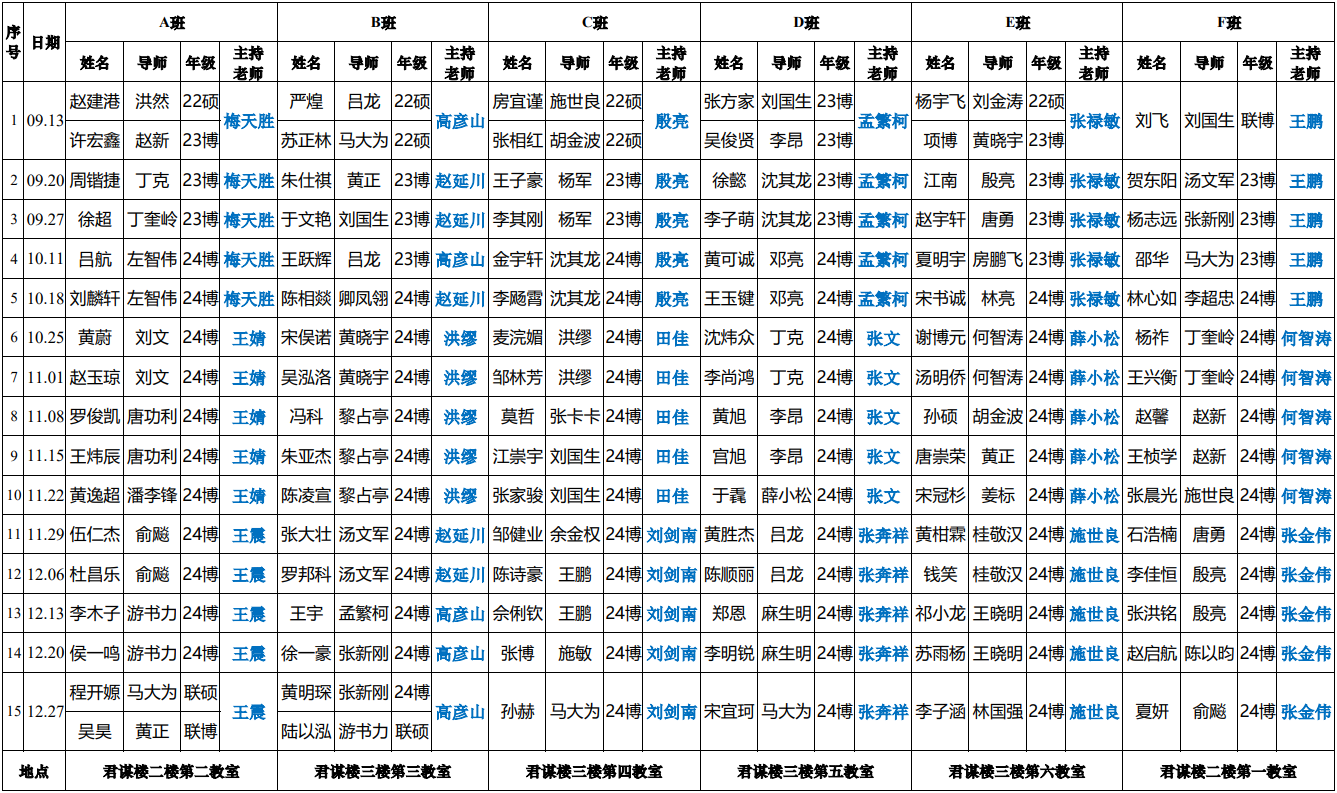 2024-2025年度第一学期Seminar进度安排