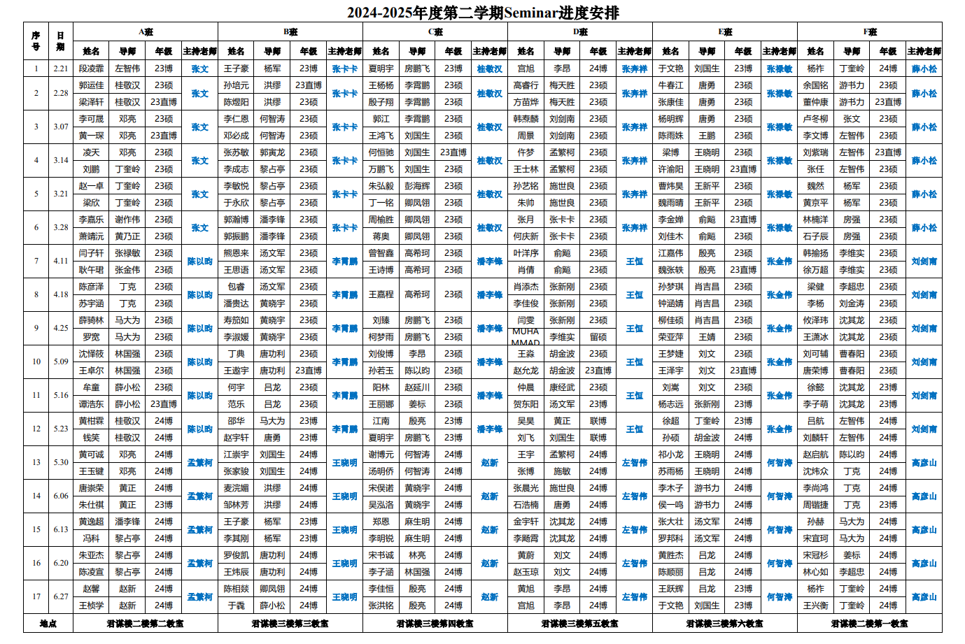 2024-2025年度第二学期Seminar进度安排