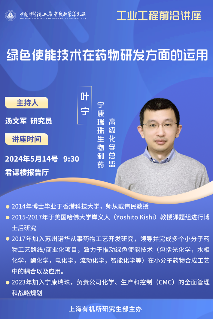 工业工程前沿讲座:绿色使能技术在药物研发方面的运用