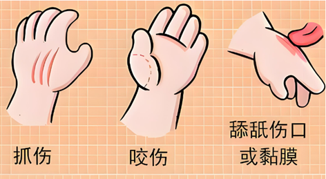 日常生活中,人可通过以下与犬、猫等患病动物接触的情形感染狂犬病: