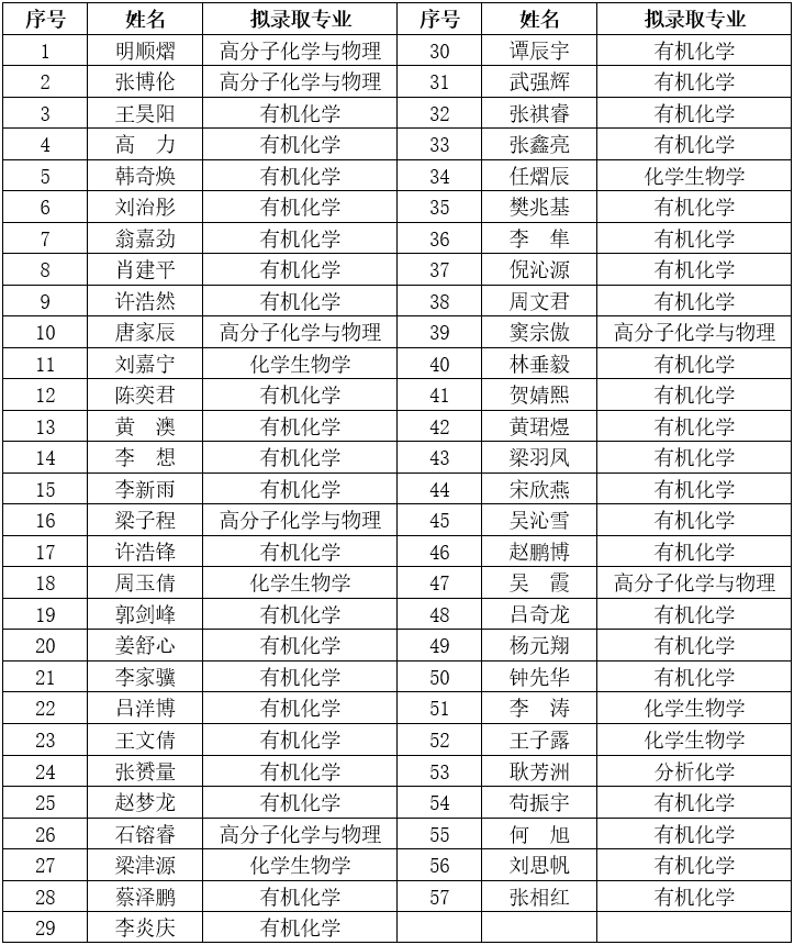 公示期间,如有异议者请与上海有机化学研究所研究生部联系。