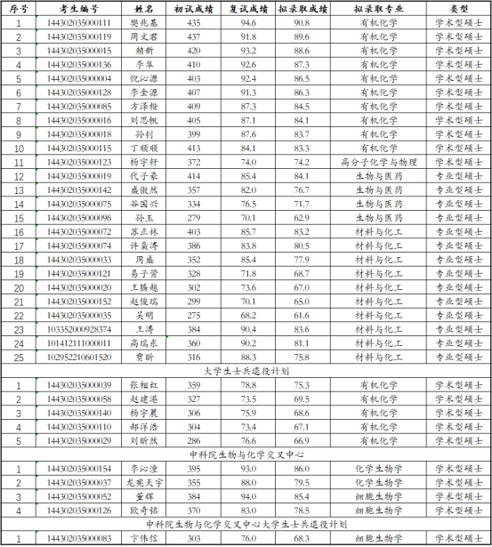 2022年上海有机所硕士统考生拟录取名单公示